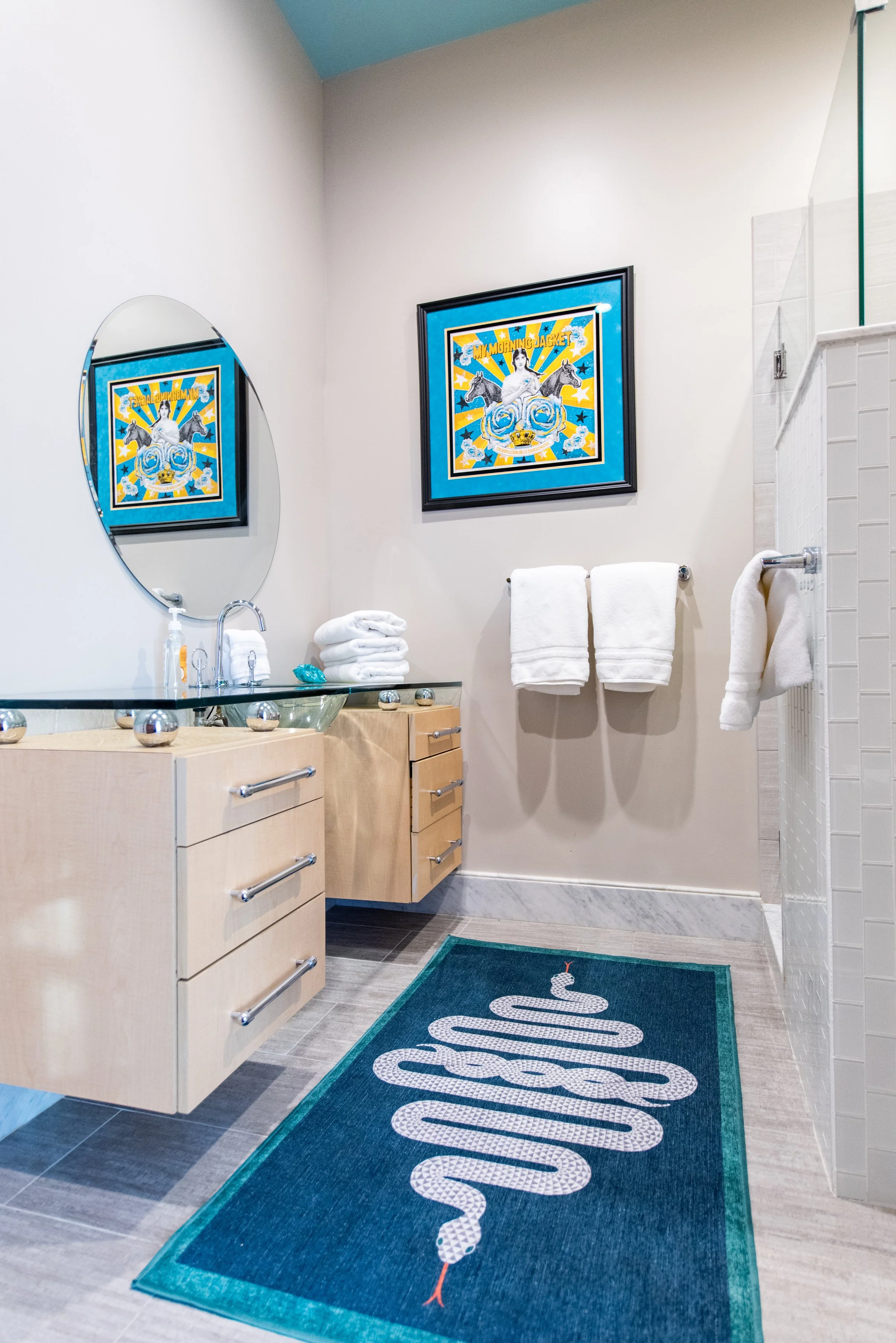 Each of our 6 guest rooms is uniquely designed and features works by local artists. 9 beds total. 4.5 Baths. Accommodates 16 guests or more
